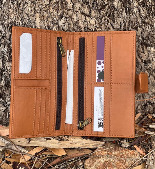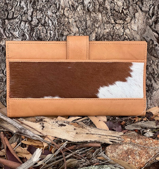 Cowhide & Woven Ladies Wallet - Los Angeles Tan & White