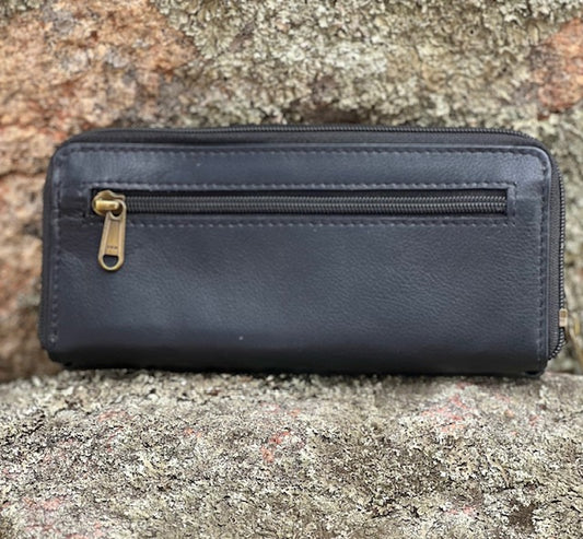 Cowhide & Leather Handcrafted Boho Wallet - Black