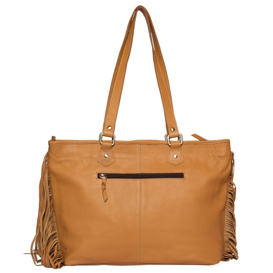 Cowhide Bag With Turquoise Stones And Fringes - Large